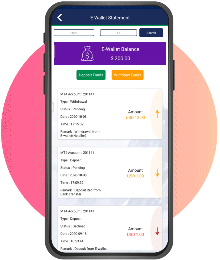 With our e-wallet option on TC app, clients can deposit and withdraw funds from their trading account at any time hassle-free without any back-office intervention.